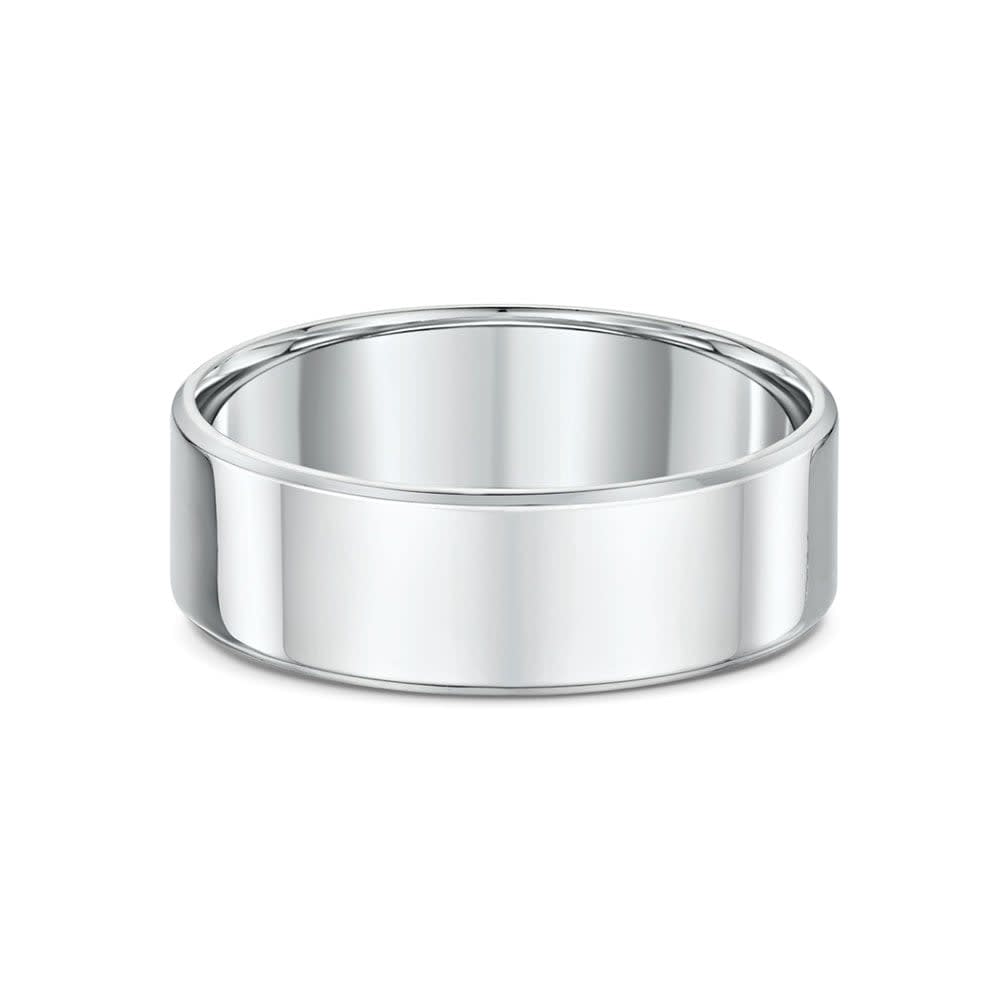Designed with polished beveled edges, this men's plain wedding band never goes out of style. This ring is crafted in white gold with a rounded interior for a snug fit. The flat surface of this classic wedding band displays a remarkable luster. The jewellery is beautifully handmade to the highest standards. Shop directly from us and save over 40% when compared to high-street retail prices. We also offer unmatched 100 day returns. Buy online or book an appointment to visit our jewellery boutiques in Sydney, Melbourne and Brisbane.