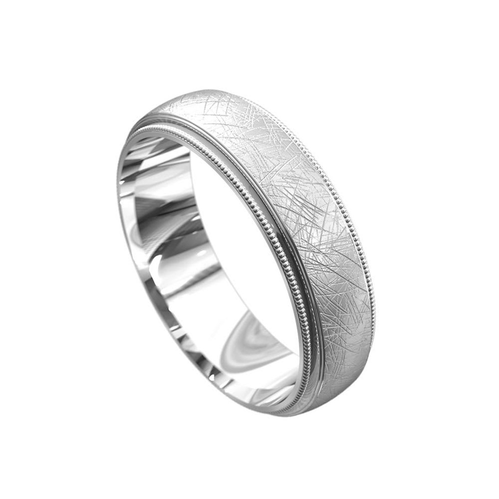 This sleek and stylish men's wedding band features ice matte finish centre, which creates a subtle texture that adds depth and character to the ring. The matte finish is adorned with an intricate etch pattern, which adds a touch of elegance to the overall design. The edges of the ring are accented with elegant milgrain detailing. The milgrain creates a subtle border around the edges and adds a touch of sophistication. All Temple and Grace jewellery is beautifully crafted to the highest standards and is made at our jewellery workshop directly by us (skilled jewellery craftsmen). This is why you can save over 40% when compared to high-street retail prices. We also offer a lifetime warranty and unmatched 100 day returns. You can shop online or book an appointment to visit our jewellery boutiques in Sydney, Melbourne, Brisbane and Perth.