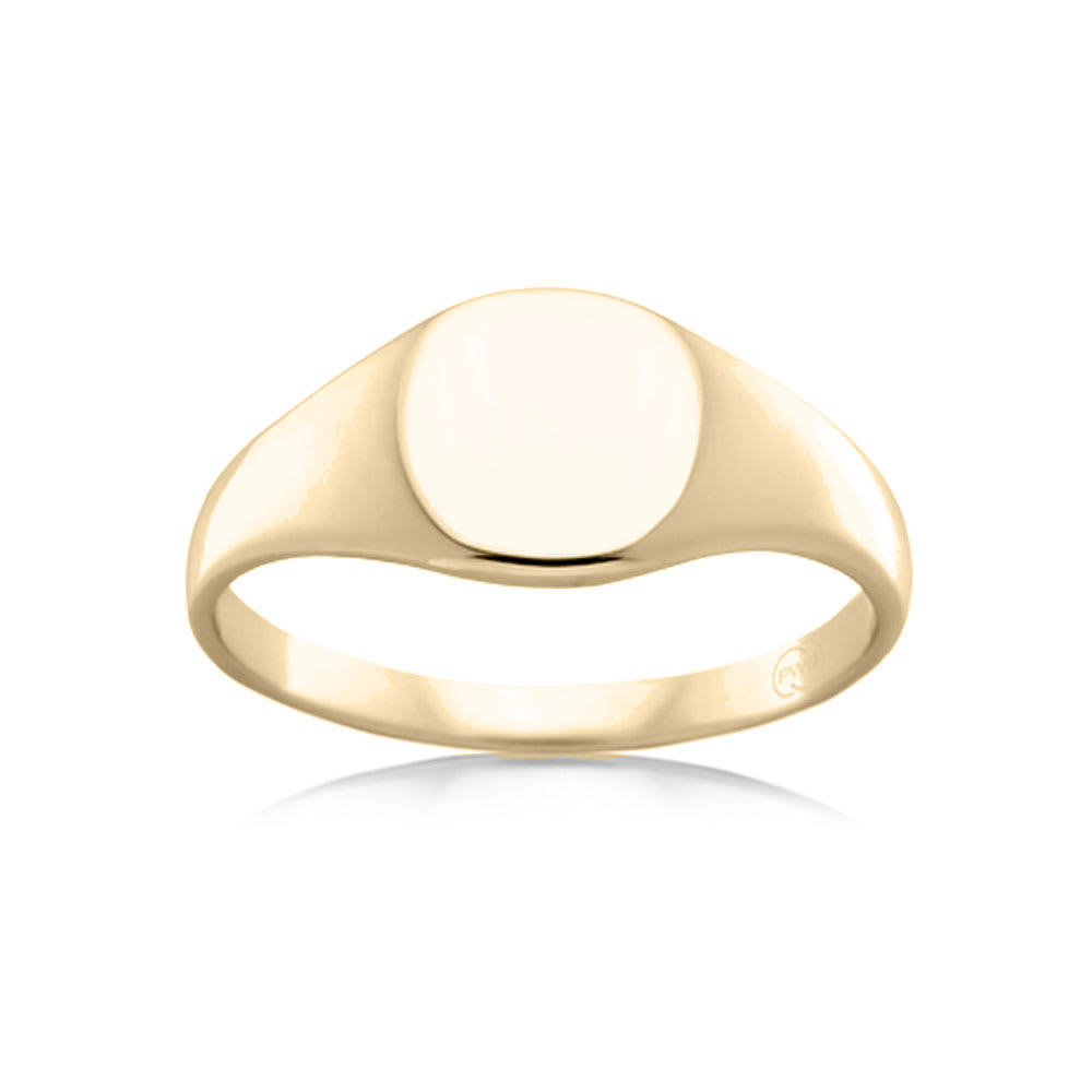 The reflective finish on the flat surface of this stylish wedding band exudes unmatched brilliance. Crafted in 18K gold, this plain oval signet wedding band has a comfort-fit and is suitable for a dynamic lifestyle. This ring is available in 18K white, yellow, rose gold, platinum 600, and platinum 950. The jewellery is beautifully handmade to the highest standards. Shop directly from us and save over 40% when compared to high-street retail prices. We also offer unmatched 100 day returns. Buy online or book an appointment to visit our jewellery boutiques in Sydney and Melbourne.
